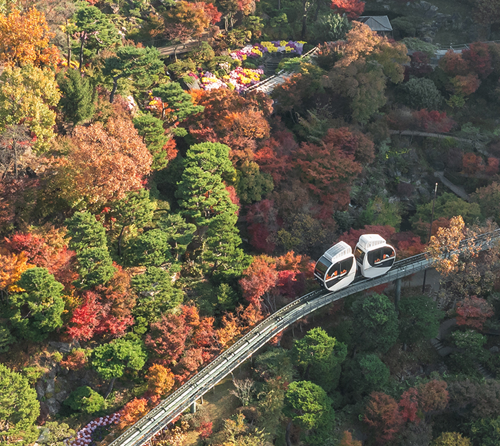 • 모노레일 아래 터널: 모노레일이 지나가는 다리 아래에서 위를 올려다보면 단풍 터널 같은 느낌을 줍니다.