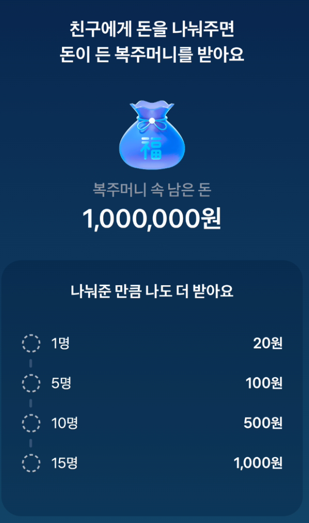 2. 상대방이 링크를 눌러 복주머니를 열면, 자동으로 토스 계좌로 금액이 입금됩니다.