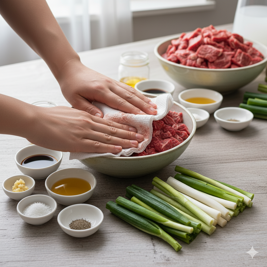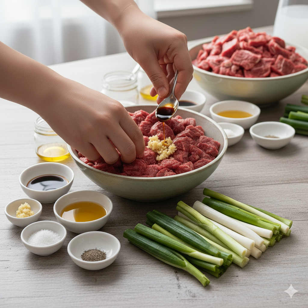 칼퇴리's E-E-A-T Insight! 개인적으로는 양지를 선호하지만, 바쁜 날엔 '국거리용' 소고기가 시간 절약에 최고입니다. 단, 얇게 썰린 것을 골라야 짧은 시간 안에 익히기 좋습니다. 살짝 얼어있는 고기를 사용하면 얇게 썰기가 더 용이합니다.