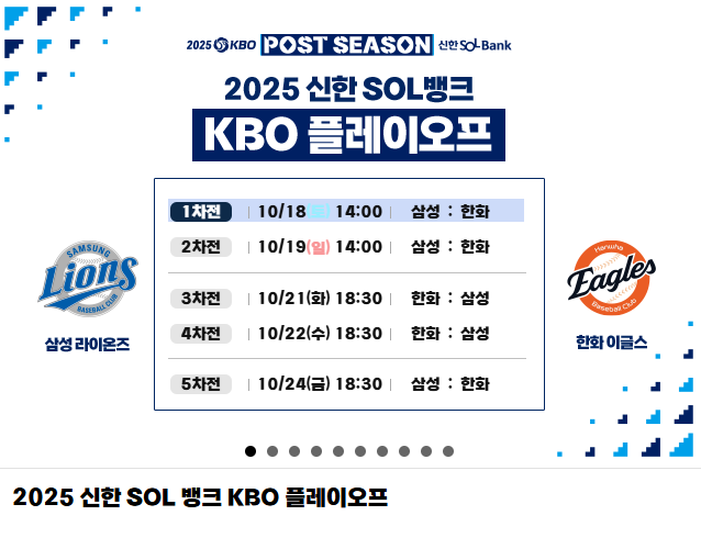 - 5차전(필요시): 10월 23일(목) 오후 6시 30분 / 대전 한화생명 볼파크