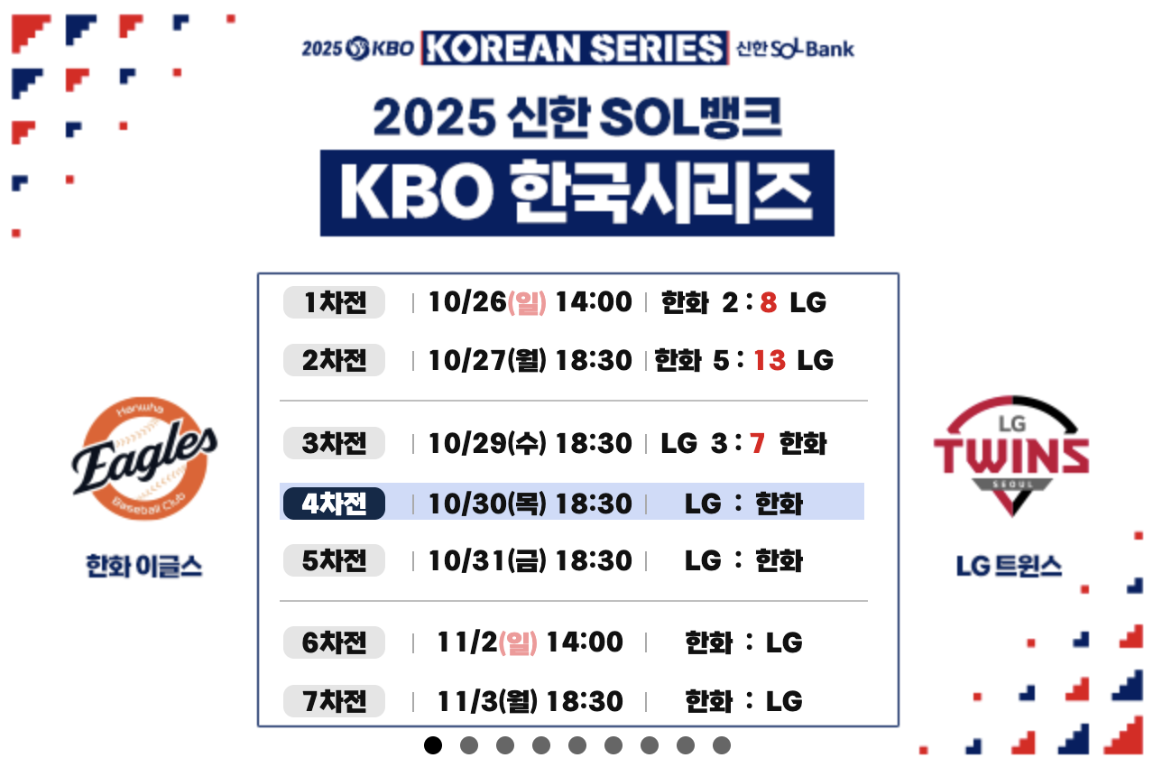 🔥오늘 저녁 6시 30분! 한화 LG 한국시리즈 4차전 중계시간·선발투수 완벽 정리 (2025.10.30)