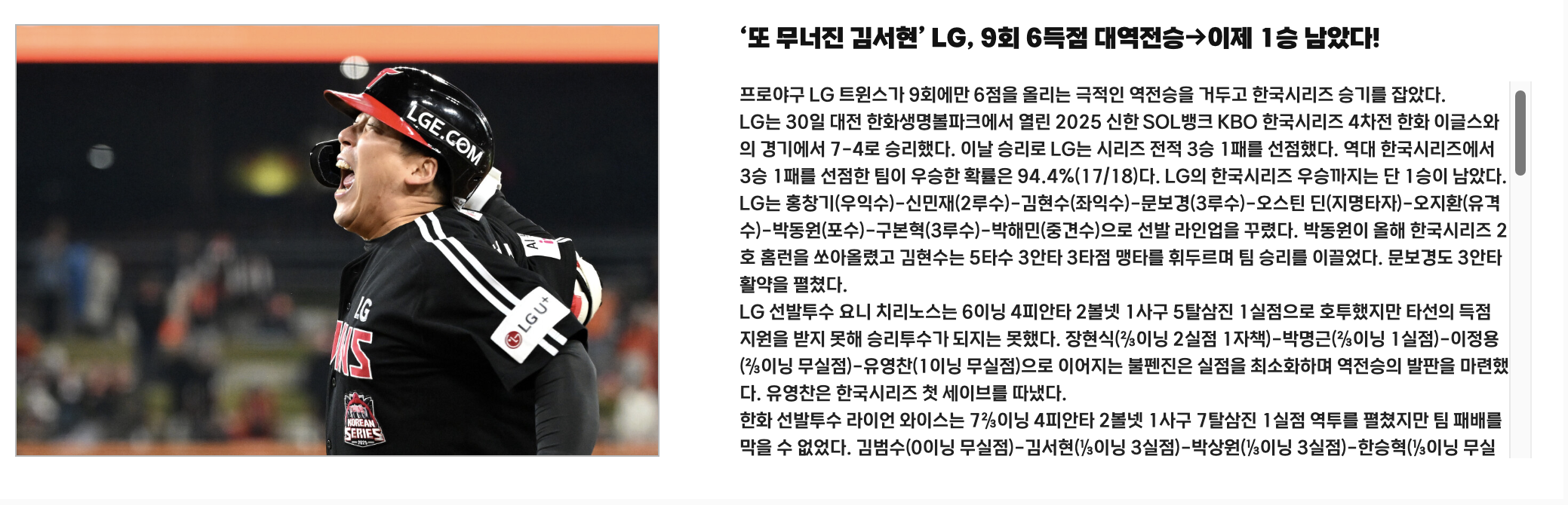 ✅ 경기 결과 요약: '9회 대역전극'으로 우승 1승 남긴 LG