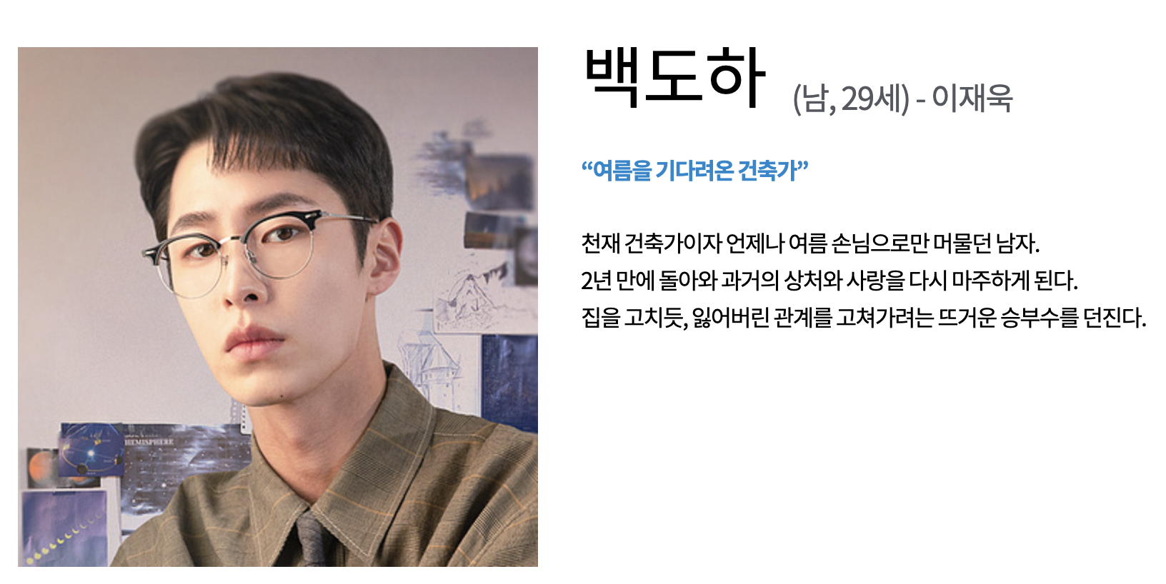 천재 건축가 백도하와 베일에 싸인 인물 백도영을 넘나들며 시청자들을 몰입시킵니다. 부모의 이혼으로 각기 다른 환경에서 자랐지만, 여름방학에만 만나는 쌍둥이 형제라는 설정이 드라마의 핵심 미스터리 중 하나예요. 도하가 하경을 향한 마음을 자각하는 반면, 도영은 또 다른 복선이 될 것 같아 기대됩니다.