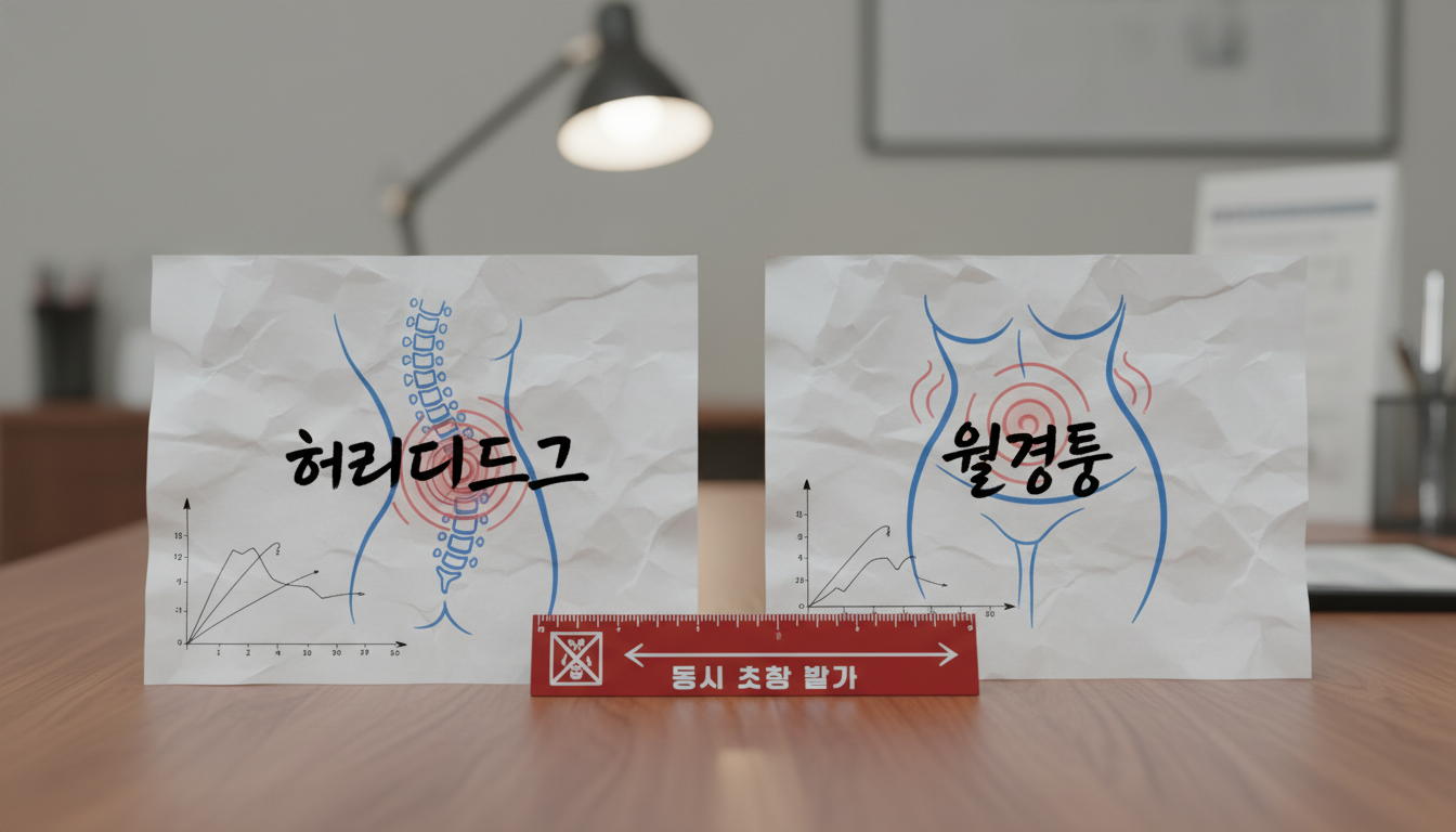 6개 적용 질환 중 **2가지 질환을 동일한 날에 처방받는 것은 불가능**합니다. 예를 들어, 허리디스크와 월경통으로 동시에 진료를 받더라도, 처방은 분리되어야 합니다. 각 질환별로 처방 가능 일수가 정해져 있기 때문에, 중복 처방은 인정되지 않습니다. 이 또한 혜택을 받기 위한 중요한 규칙 중 하나입니다.
