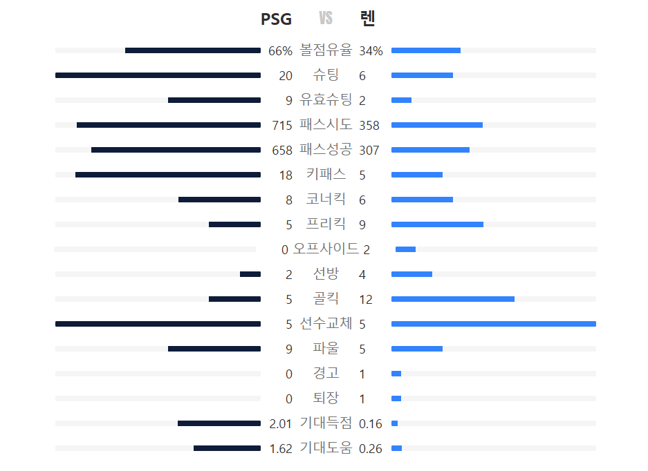 렌은 PSG의 공격을 막기 위해 노력했지만, 전반 27분과 33분 세트피스 기회를 제외하고는 이렇다 할 공격 찬스를 만들지 못했습니다. 후반전 수비수 퇴장 이후에는 사실상 수비에만 치중하며 대량 실점을 막으려 했지만, PSG의 파상공세를 감당하기에는 역부족이었습니다. PSG는 측면 공격과 중앙 돌파를 적절히 섞어가며 렌 수비진의 약점을 효과적으로 공략했습니다. 특히 중원에서의 볼 점유와 빠른 전환은 PSG 공격의 핵심이었습니다.