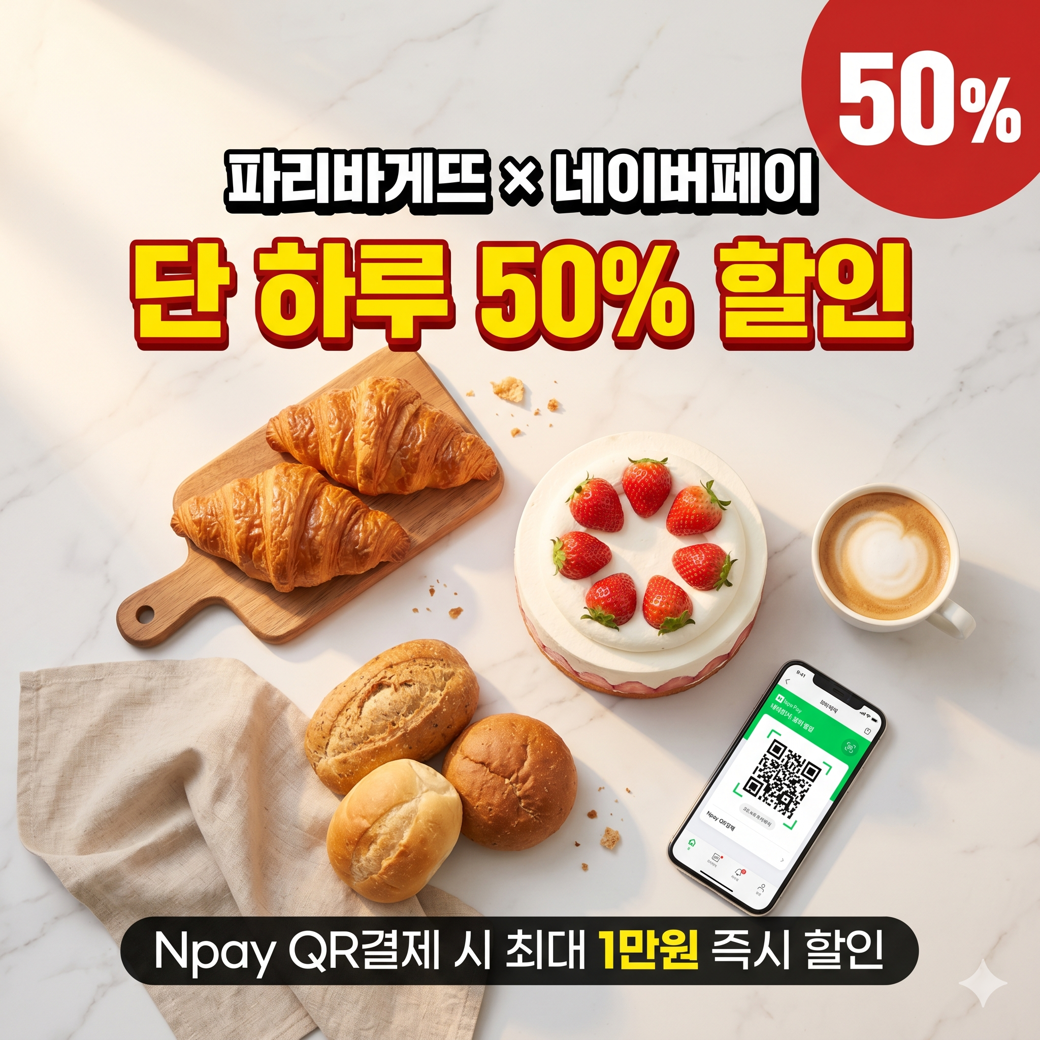 파리바게뜨가 네이버페이와 손잡고 단 하루 최대 50% 할인 프로모션을 진행했습니다. 2026년 4월 17일(금) 하루 동안 전국 파리바게뜨 매장에서 네이버페이(Npay) QR결제로 결제하면, 구매 금액의 50%를 즉시 할인받을 수 있는 파격적인 이벤트였는데요. 이번 글에서는 행사 조건과 결제방법, 반드시 알아야 할 주의사항, 그리고 함께 사면 좋은 파리바게뜨 케이크 추천까지 한 번에 정리해 드리겠습니다.
