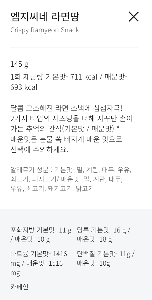 칼퇴리's Tip! 라면땅 프라페는 기본맛 라면땅이 토핑으로 올라가지만, 단품 라면땅은 두 가지 맛 중 선택이 가능하니 꼭 취향에 맞게 골라보세요. 매운맛을 좋아하는 분이라면 단품으로 매운맛 라면땅을 따로 시도해보는 것을 강력 추천합니다!