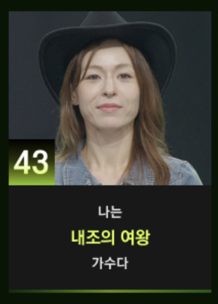 • 43호 가수 (내조의 여왕 가수): 배우 김현성의 아내로 추정되는 **전혜선** 씨가 싱어게인4 43호 가수일 가능성이 높습니다. 그녀의 무대는 단순히 한 가수의 복귀가 아닌, 배우의 아내로서 겪었을 고충과 재도전의 용기가 담겨 있어 많은 이들에게 감동을 주었습니다.