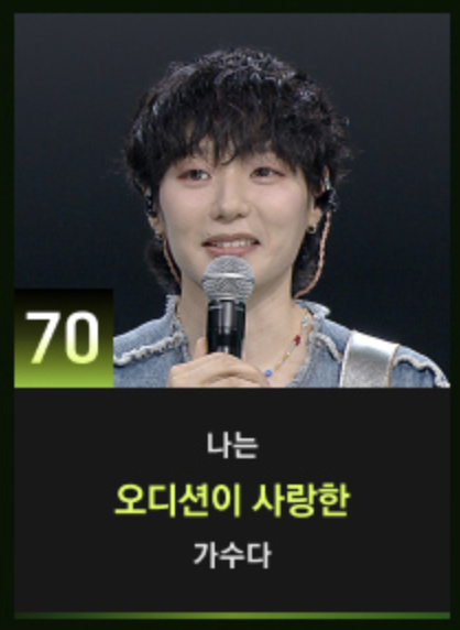 • 70호 가수 (오디션이 사랑한 가수): 싱어게인4 70호 가수는 여러 오디션 경험을 통해 다져진 실력파 보컬입니다. 과연 이번 <싱어게인4>에서는 어떤 새로운 모습을 보여줄지 귀추가 주목됩니다.