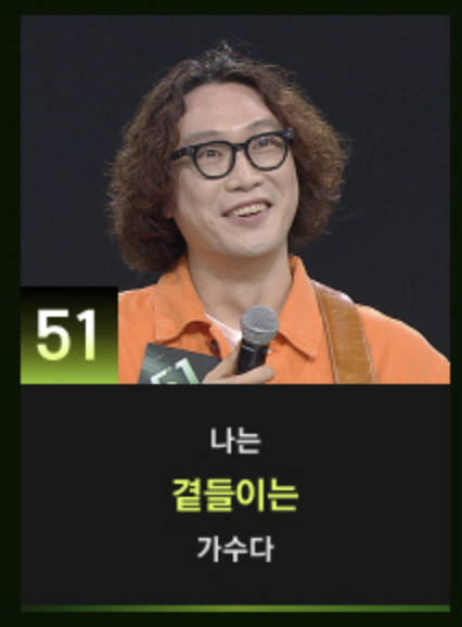 - 51호 가수 (곁들이는 가수): 홍대 인디밴드 1세대 출신이라는 싱어게인4 51호 가수는 묵직한 내공으로 무대를 장악했습니다. 저도 홍대에서 활동하던 시절이 떠올라 더욱 몰입할 수 있었습니다.