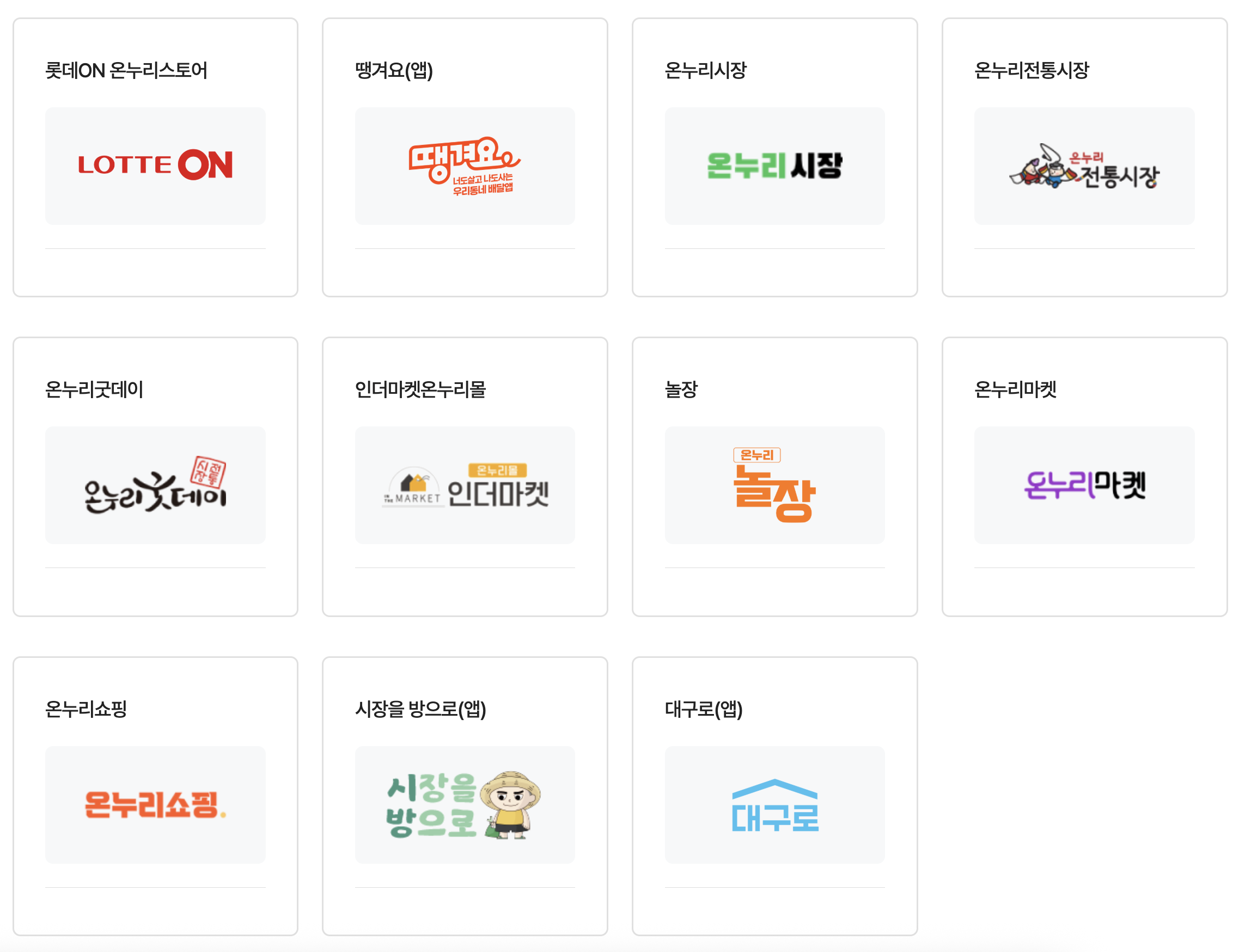 | 주요 사용처 | 주로 오프라인 전통시장 | 오프라인 + 온라인 쇼핑몰 |