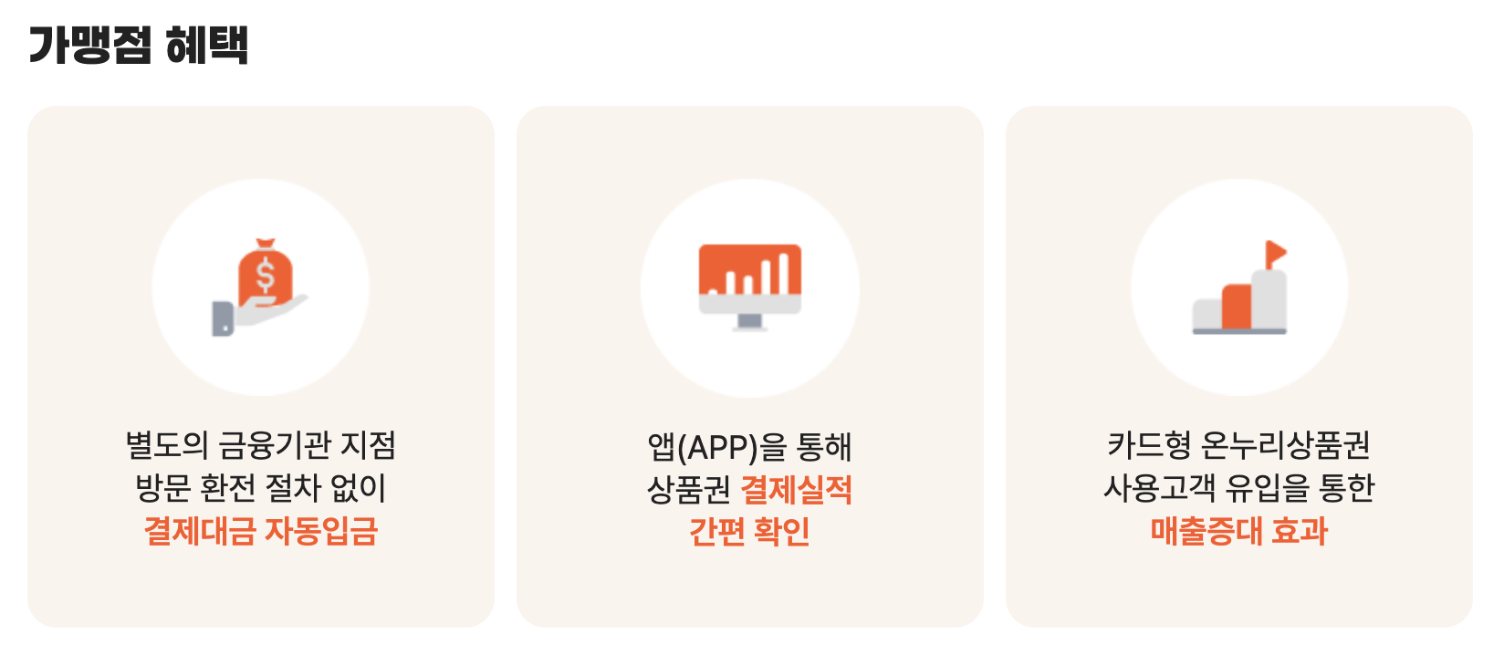 - 온누리상품권 홈페이지 및 앱을 통한 무료 홍보 (가맹점 위치 및 정보 노출)