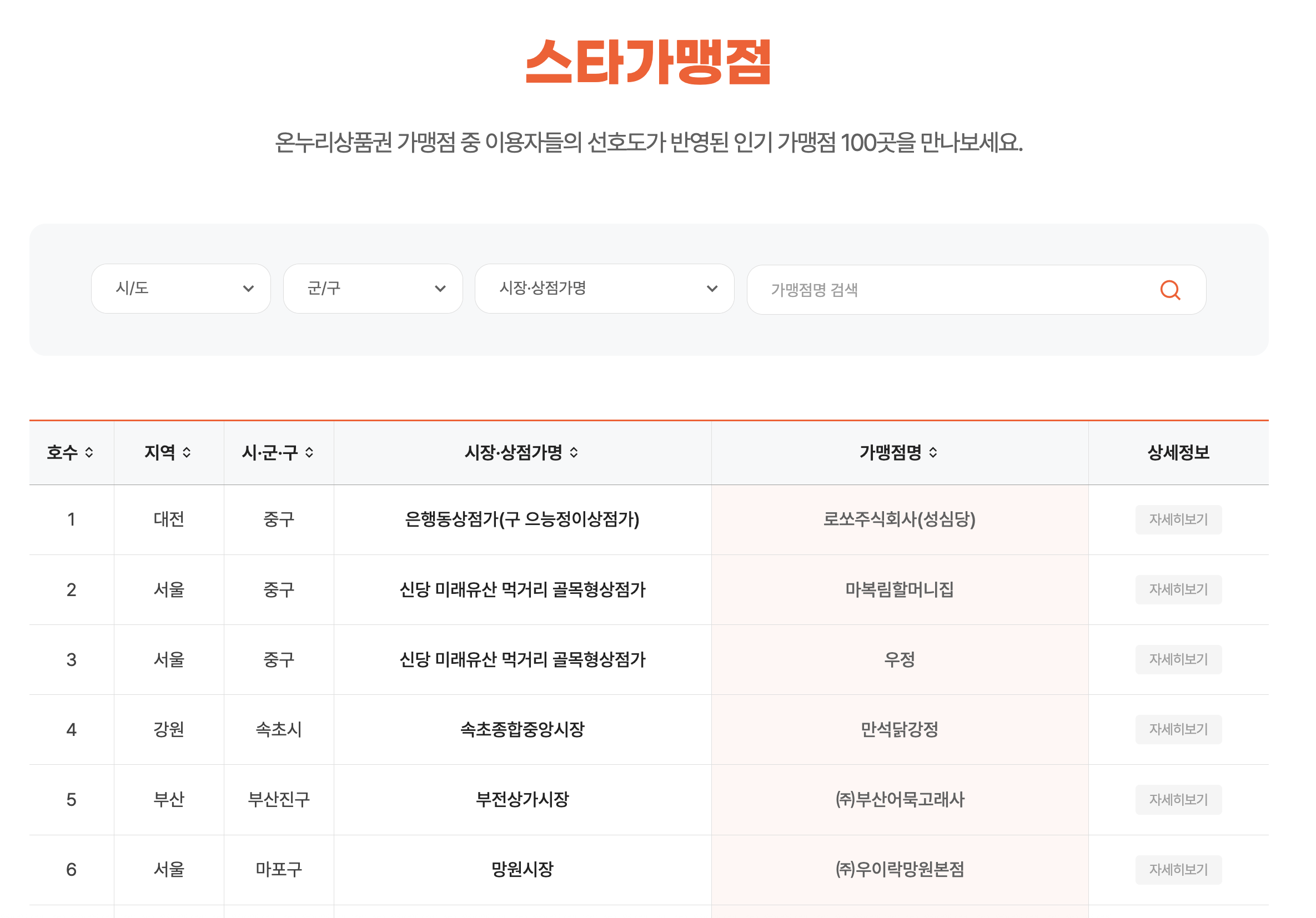 - 전통시장통통 사이트: 지도 기반으로 편리하게 가맹점 찾기