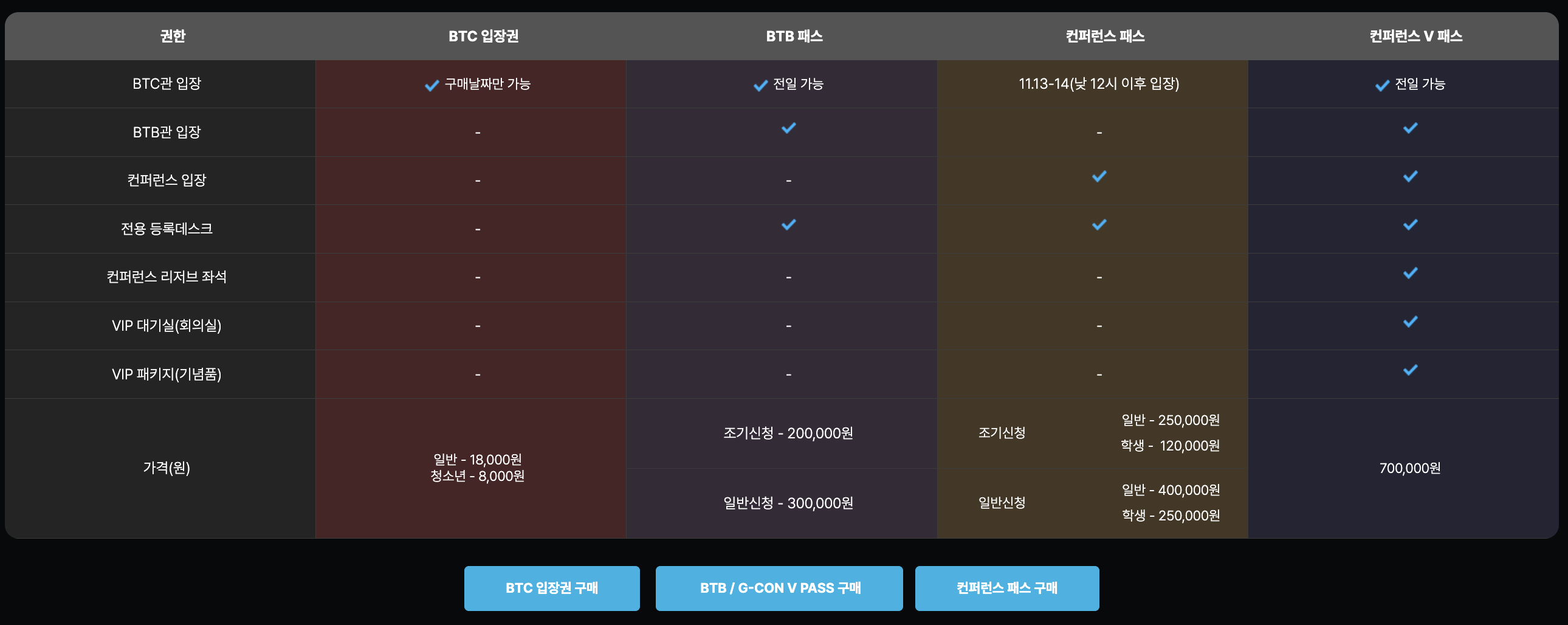 컨퍼런스 패스 소지자는 BTB 운영 기간 중 BTC 전시장 입장이 가능하지만, 일반 관람객이라면 오직 사전 예매가 답입니다.