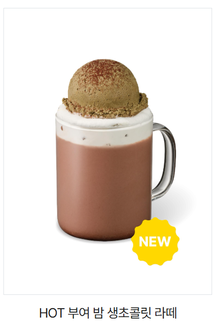 * 11월 4일 프로모션 적용 시: 부여밤라떼 1,750원 / 부여밤생초콜릿라떼 2,450원 (현재 종료)
