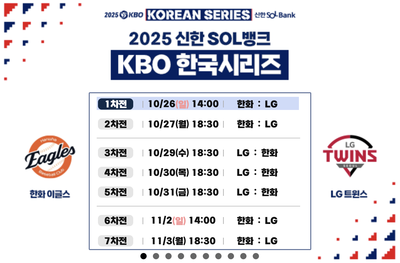 ✅ 오늘 오후 2시! LG vs 한화 한국시리즈 1차전 중계시간·경기일정