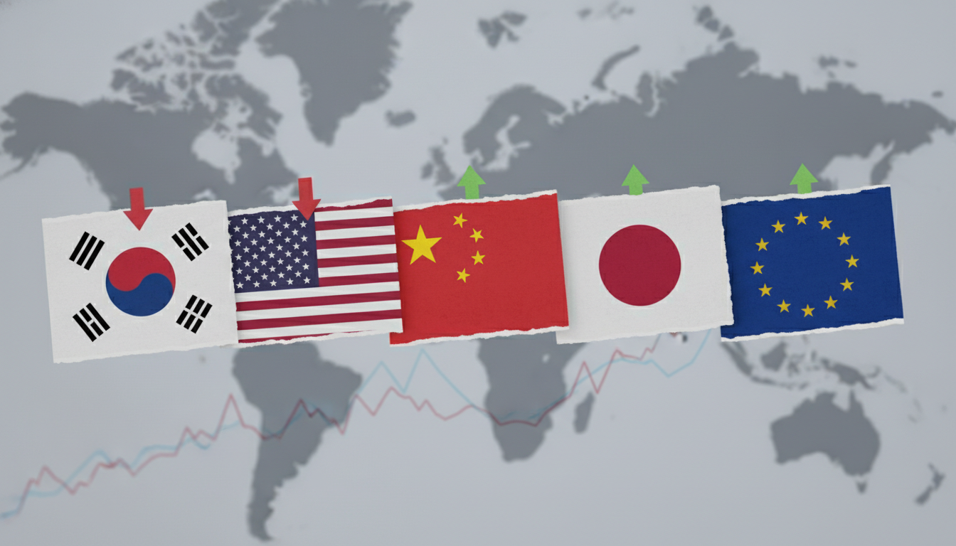 2️⃣ 주요국 성장률 전망 비교: 한국, 홀로 하향 조정의 의미
